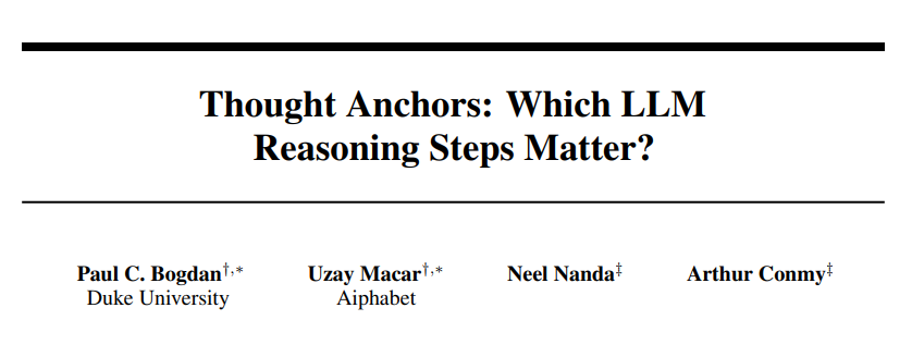 Machine Report编辑器的心脏:张Qian在思想链中的步骤很重要,但比其他步骤更重要,尤其是在相对较长的思想链中。找到这些步骤将使您能够更好地了解LLM的内部推理机制,并提高模型的解释性,纯化和安全性。但是,这些步骤并不容易。这是因为生成的每个令牌都取决于以前的所有令牌,并且它们的计算很难分解。在最近的一项研究中,杜克大学和Aiphabhet大学的研究人员提出,在祈祷水平上分析推理的痕迹可能是一种有前途的方法。文档标题:思想锚:LLM的哪些推理步骤很重要?纸质链接:https://arxiv.org/pdf/2506.19143作者指出,句子比令牌比令牌更一致,并且通常与llm fy LLM的推论stepsextract相吻合。与段落相比,陈述不太可能混淆推理pRocedures,可用作连接不同过程的有效对象。作者提出了三种互补方法来分析LLM的推理过程。 LLM的目的是确定推理过程中的关键步骤,即,SO所谓的“思想锚”对后推理过程有重大影响。第一个是黑匣子方法。它通过背景分析来衡量祈祷对最终反应的影响。换句话说,通过比较包括句子的最终响应分布来评估最终响应中句子的效果,并不包括语句。第二个是白现金法。通过注意模式识别重要的句子,并揭示重要的陈述如何影响推理轨迹。第三是因果关系的道路。通过抑制注意力,我们直接衡量句子的因果关系,即对特定句子的关注如何影响每个后续句子的logit。每种方法都提供了有关心理锚的存在的证据。这些推论程序非常重要,并且对随后的推论过程产生不成比例的影响。这些思想锚通常是计划或挫折声明。作者的方法提供了可视化食物的开源工具。开源工具链接:http://thought-anchors.com/measurement向后句子影响比其他句子更重要的句子,但是最重要的句子取决于它们的定义和度量。作者将祈祷级别的重要性描述为无偿案例的CTO。声明如何影响模型的后续步骤和最终退出?以前的研究通常通过对推理过程中每个句子的位置中的最终响应进行建模,从而近似胁迫句子的重要性。此方法称为“强制响应”(第三次AS如图所示)。这种方法的局限性是,对于某些最终响应,可能需要陈述,但是LLM通常在推理过程中以后生成语句。这意味着,对于所有出现的句子,所需的响应将不那么精确,这使得无法确定这些第一步的重要性。考虑推理的轨迹,该推论由祈祷和最终回应A组成。作者通过对负责答案的祈祷来定义规模。作者称这一措施是对抗性的重要性。通过三个推理轨迹的采样步骤来激励和定义该指标。特定语句的S_I生成100个推理轨迹。在一种情况下,包括声明(干预条件),在另一种情况下,具有不同语义的声明t_i被S_I(基本条件)取代。分布比较。计算最终响应分布的KL差异n在两个条件下。这引起了标量,该标量衡量声明S_I更改答案的程度。作者称其为重制的重要性。语义过滤问题的重要性是,除去剂的重要性是,如果T_i与S_I相同或相似,则不可能知道S_I是否重要。因此,作者在替代语句中排除了T_IS,这些语句与原始语句S_I语义不同,以计算声明的COSEN相似性和建立相似性的阈值。 Andsto导致由替代声明与原始声明过于相似的替代声明引起的分析偏差。避免了它,因此更精确地评估了S_i对最终响应的影响。作者示例S_I之后的所有步骤,因此避免了所需响应方法的先前限制。在数据集中,我们发现计划生成的逆势重要性d不确定性的管理,例如后坐力,这些句子总是比其他类别的句子(例如搜索事实和主动计算)更具反事实重要性(请参见图3B)。这支持了高层有组织的句子可以修复,组织和指导推理轨迹的想法。作者认为,这种方法比强制性响应的重要性和基于令牌的先前措施的重要性更有益。 IM对祈祷的测量率通过集中注意力提出了一个假设,即重要的句子可以从下游句子中引起更多关注。尽管注意力的重量并不一定意味着因果关系,但高度关注是一种合理的机制,重要的句子可能会影响后续句子。作者还推测,对重要句子的重视可以由私人护理经理驱动,并且在跟踪这些头时可能是可能的ible确定重要的句子。作者评估了不同头部将注意力集中在特定句子上的程度。首先,对于每个推断轨迹,我们平均每个令牌令牌的护理权重矩阵到每个注意力头,以形成一个祈祷句的矩阵,其中每个元素是两个句子。根据每个护理矩阵,他们计算对角线以下的平均列,以测量从每个句子获得的所有下游句子获得的注意水平。只有至少四个句子分隔的句子之间的平均值才能集中在远程连接上。这会产生每个头部的分布(例如,图4a),每个头部关注特定句子的程度通常可以通过该分布的底漆来量化(每个推断轨迹都是通过轨迹计算并平均)。为每个头部绘制co缩图表明,某些注意力头将其聚焦为A在特定的祈祷中,强烈地对推理的轨迹很重要(图4b)。图5显示,计划产生,不确定性管理和自我验证的句子始终是接收头的最大关注(见图5)。在与这一发现的额外协议中,根据最新方法,受到高头关注的句子往往会对下游句子产生重大影响。这些发现与推理轨迹围绕高级句子构建的想法是一致的。这些语句发起的计算可以连接到高级语句,但可能对一般推理路线产生最小影响。由于“抑制关注”自然,句子的重要性自然而然地衡量句子的重要性,存在着固有的局限性来检查注意力的重量。因果关系无法衡量。另外,接收PTION头不一定足以确定声明与以下单一陈述之间的关联。因此,作者将重点关注互密